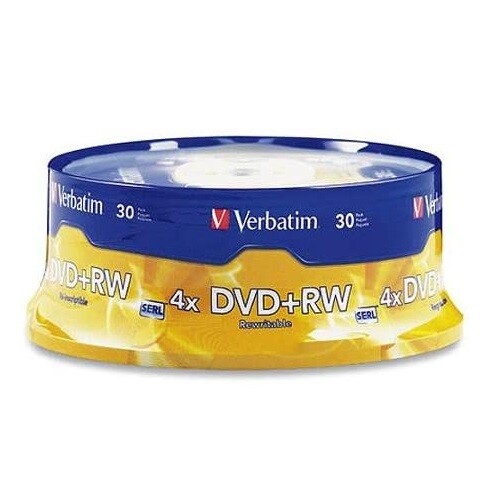 Verbatim 94834 4x DVD+RW Media 4.7GB 30 Pieces Rewritable Branded in Spindle